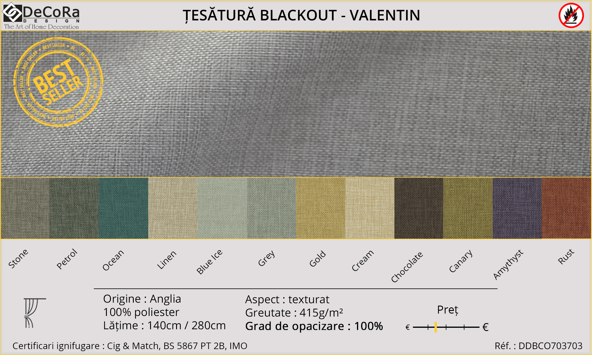 Daca aveti nevoie de un somn linistitor, ori de intuneric complet intr-o incapere, tesaturile blackout sunt variante spre care este indicat sa va indreptati. Draperiile din acest material nu permit deloc trecerea luminii, oferind, cum ar spune expertii din acest domeniu, opacitate 100%. Cu ajutorul lor, incaperi cu destinatii diferite pot fi decorate astfel incat sa se respecte atat nevoile estetice, cat si cele functionale. Din acest tip de material se pot croi draperii clasice, storuri romane sau panouri japoneze.