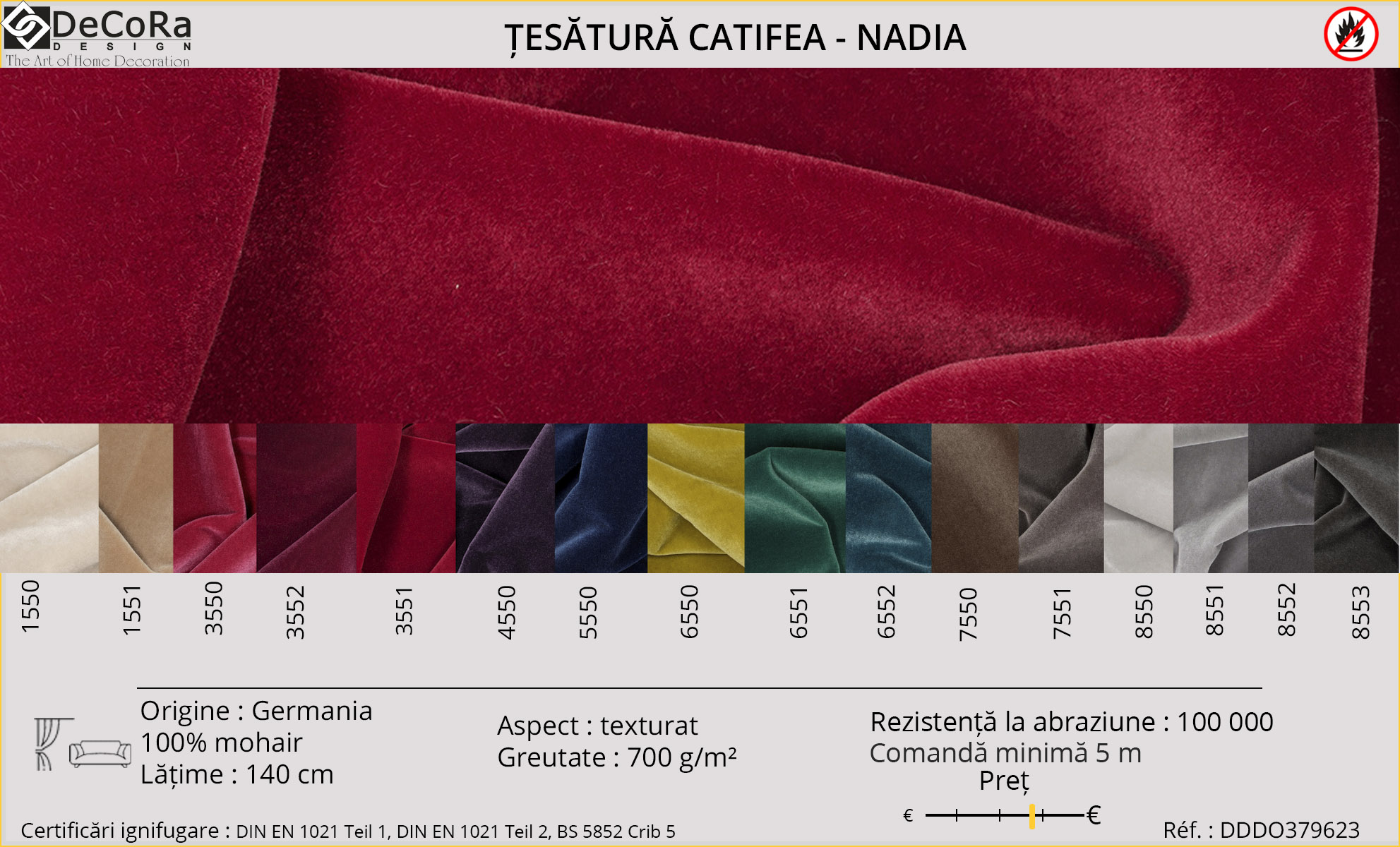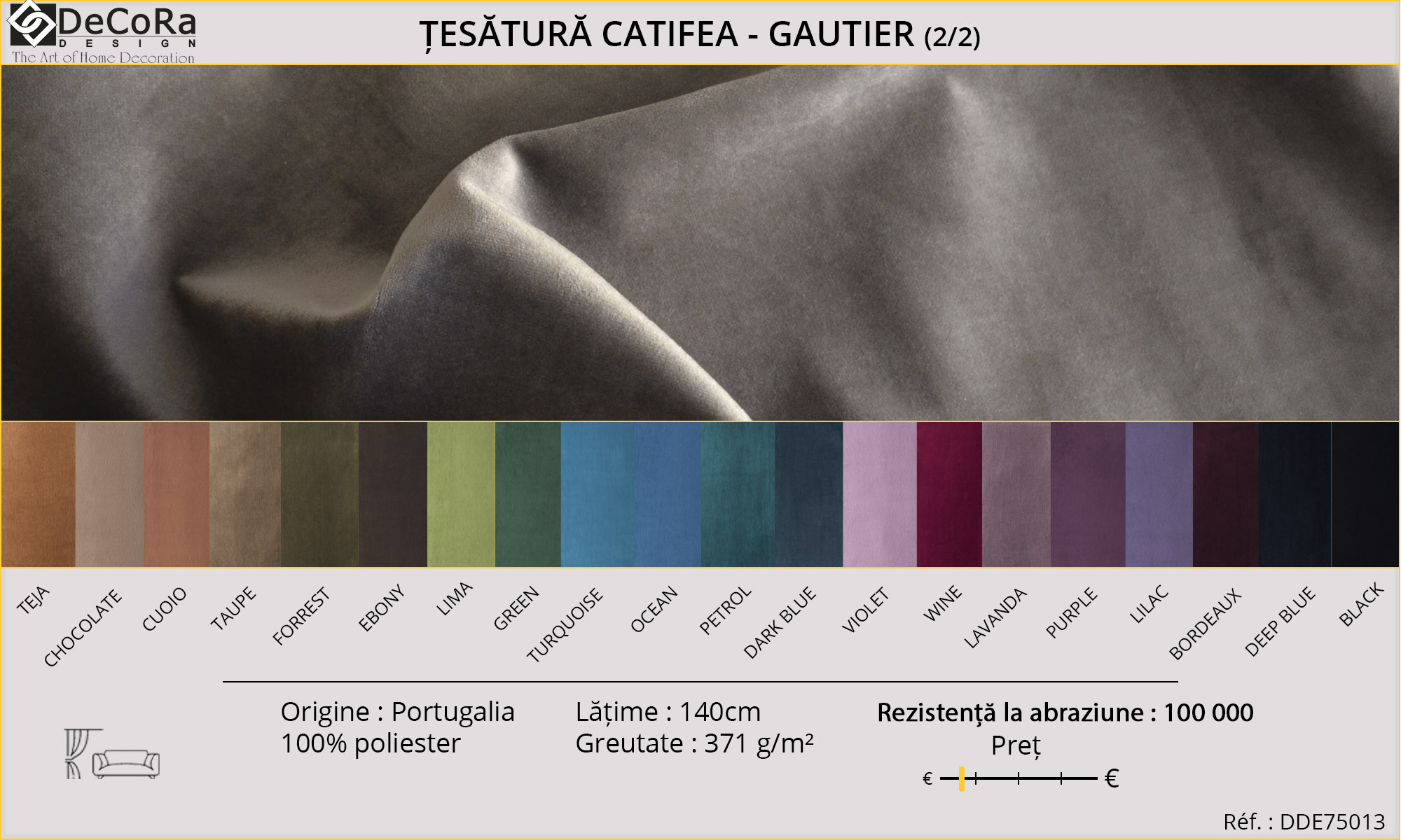 De la casual, la exclusive, comercializăm materiale tapițerie destinate înfrumusețării spațiilor din instituții, pentru săli publice sau de spectacole, clădirilor de birouri, precum și pentru locuințe.
