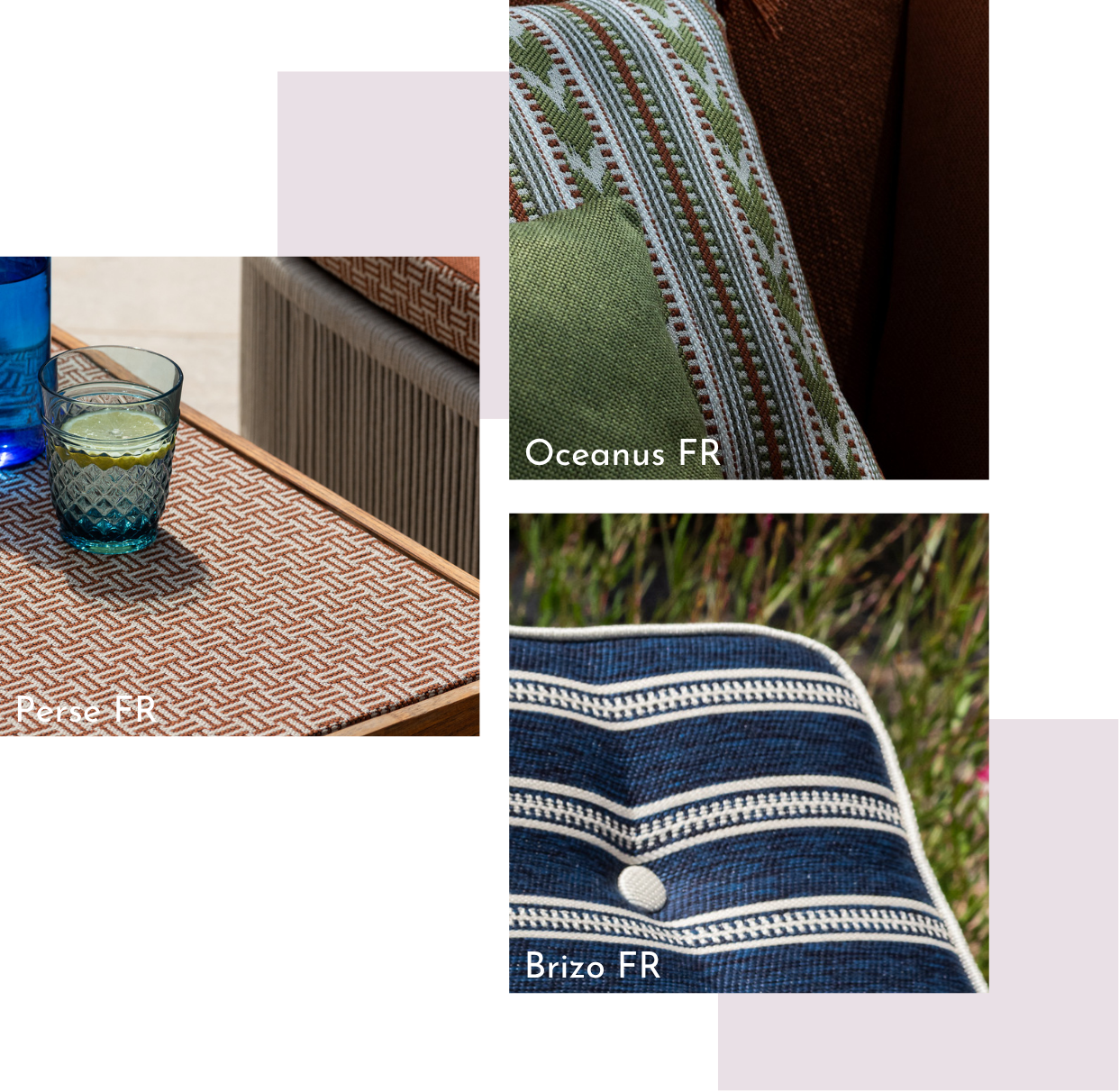 Fischbacher 1819 extinde eleganța și rafinamentul textilelor sale la exterior prin colecția Helios & Oceanus, o selecție de opt țesături ignifuge, concepute pentru a armoniza spațiile interioare și exterioare. Inspirate de Titanii greci – Helios, zeul soarelui, și Oceanus, zeul mării – materialele combină performanța excepțională cu estetica subtilă, fiind rezistente la UV, apă sărată și dezvoltarea mucegaiului. Printre produsele colecției, Perse FR impresionează printr-un pattern geometric discret, disponibil în șapte nuanțe și cu 30.000 de cicluri Martindale; Oceanus FR combină dungi și motive geometrice, oferind 35.000 de cicluri Martindale și cinci variante cromatice; iar Brizo FR prezintă un model cu dungă centrală și motive geometrice, rezistent la 45.000 de cicluri Martindale și disponibil în șapte culori, aducând funcționalitate și eleganță discretă în mobilierul outdoor.