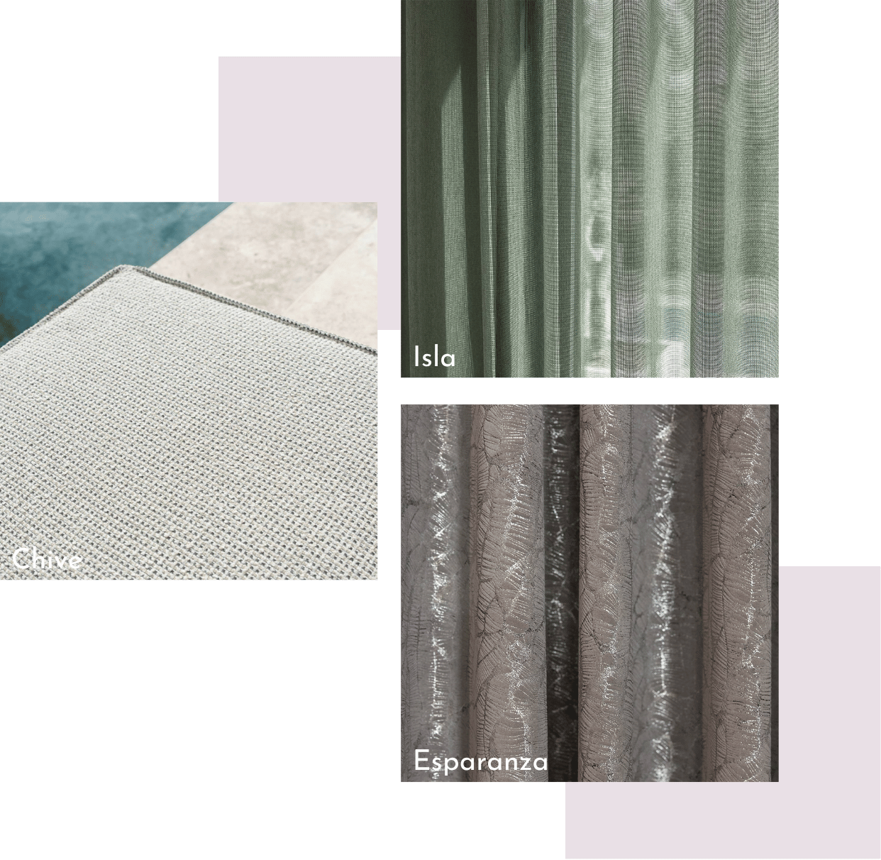Colecția Kobe Interior Fabrics celebrează echilibrul dintre estetică rafinată și sustenabilitate contemporană, transformând fiecare interior într-o expresie a confortului sofisticat. De la finețea aerată a perdelei Isla, o țesătură tip plasă uni realizată din poliester reciclat, ce lasă lumina să curgă natural și conferă spațiului o seninătate organică, până la vitalitatea practică a materialului Chive, o tapițerie rezistentă, perfectă pentru utilizarea în exterior, ce îmbină performanța tehnică cu eleganța texturii naturale, și până la magnetismul subtil al draperiei Esperanza, definită de detalii metalice ce captează lumina într-un joc sofisticat de reflexii, colecția îmbină luxul tactil cu responsabilitatea ecologică. Kobe redă fiecărui spațiu o armonie modernă, atemporală, ușor de întreținut și profund inspirată de frumusețea designului autentic.
