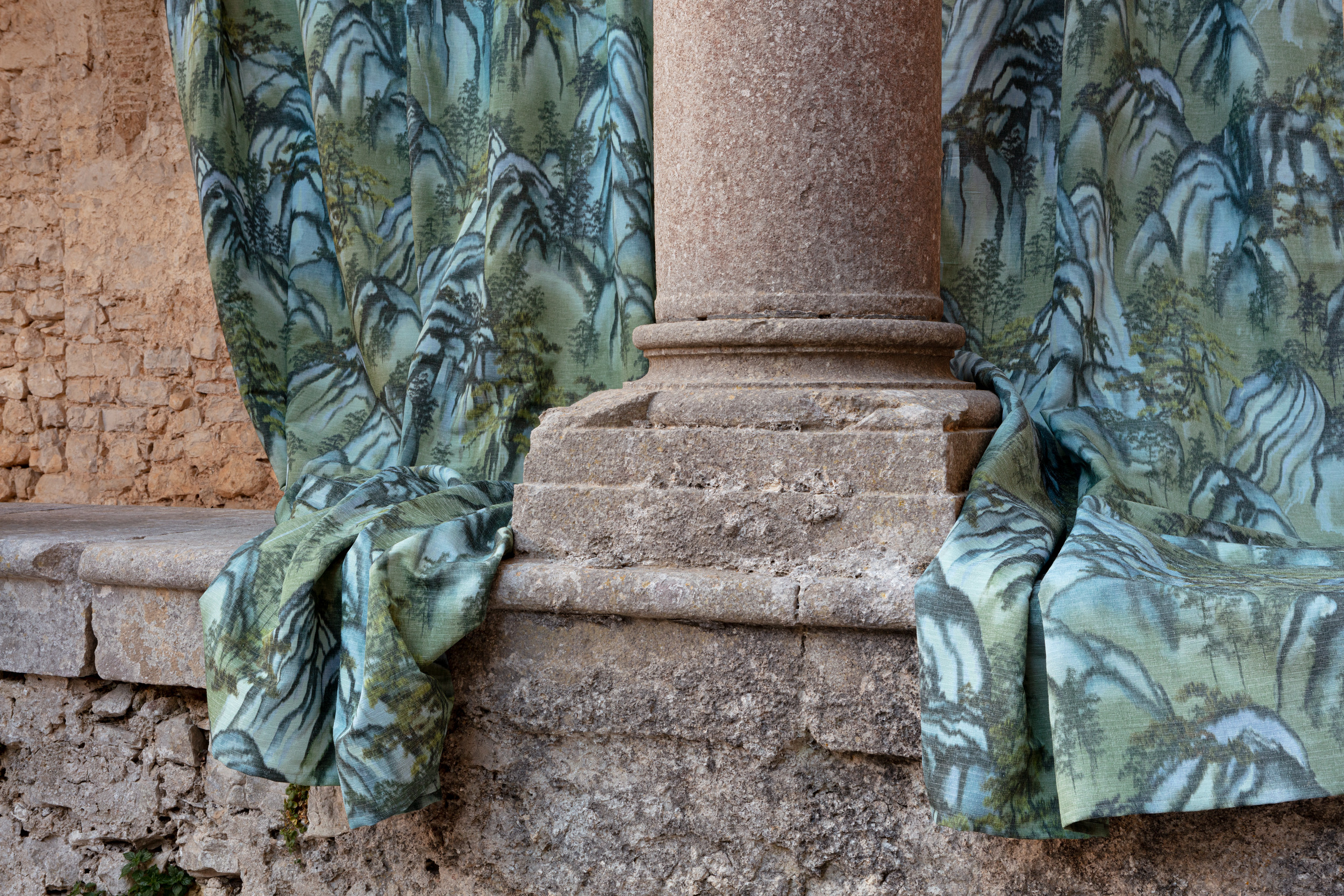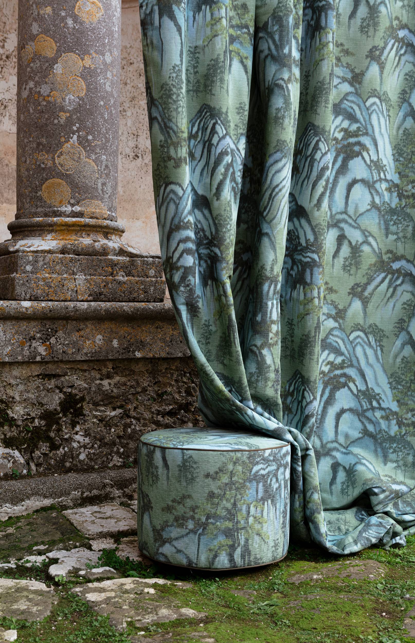 Draperie ignifugată verde pastel printat profesională pentru protecție la foc – Decora Design București