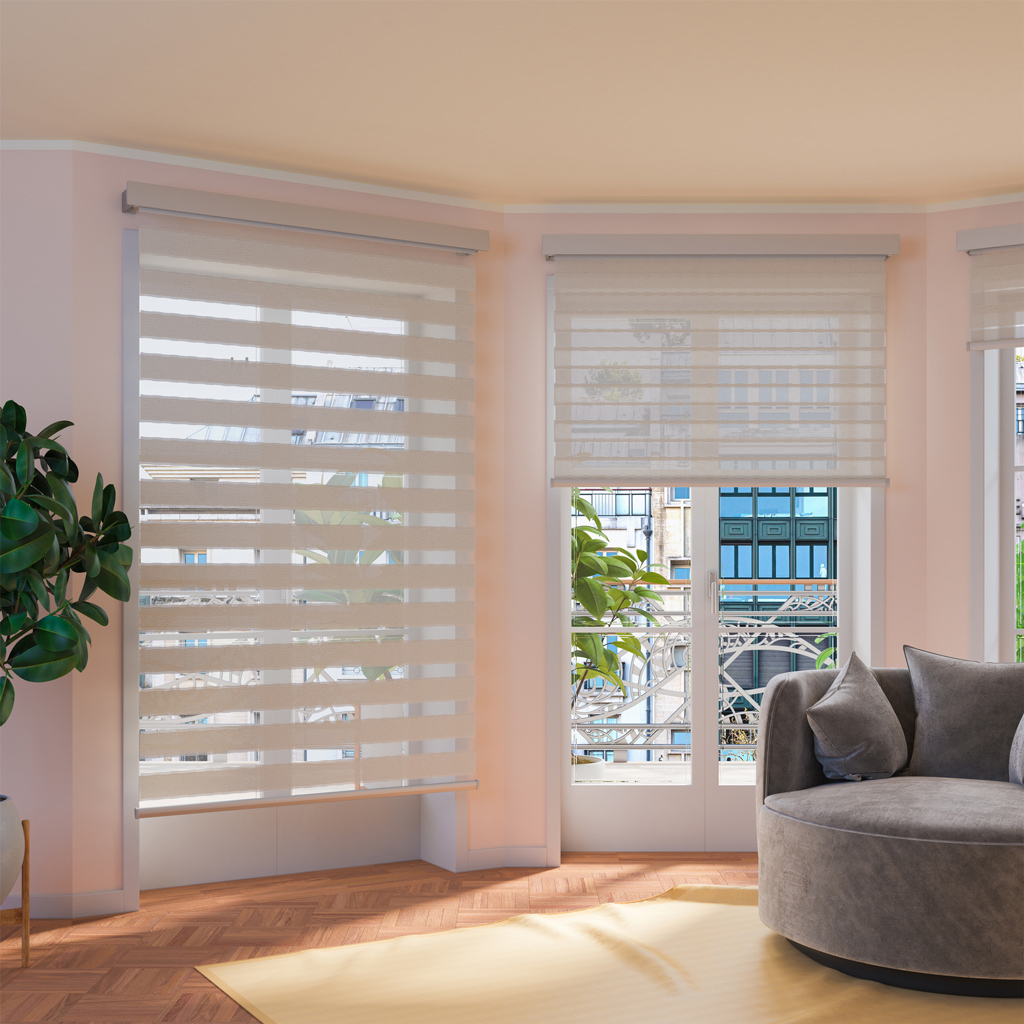 Permit un control precis asupra cantității de lumină naturală care intră într-un spațiu. Designul cu două straturi oferă flexibilitate, asigurând un echilibru între intimitate și filtrarea luminii, fiind ideale pentru diverse locații din HoReCa, de la restaurante la camere de hotel.