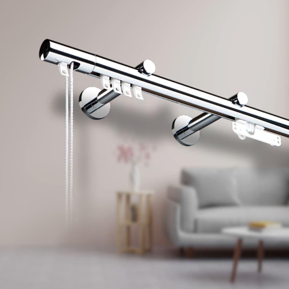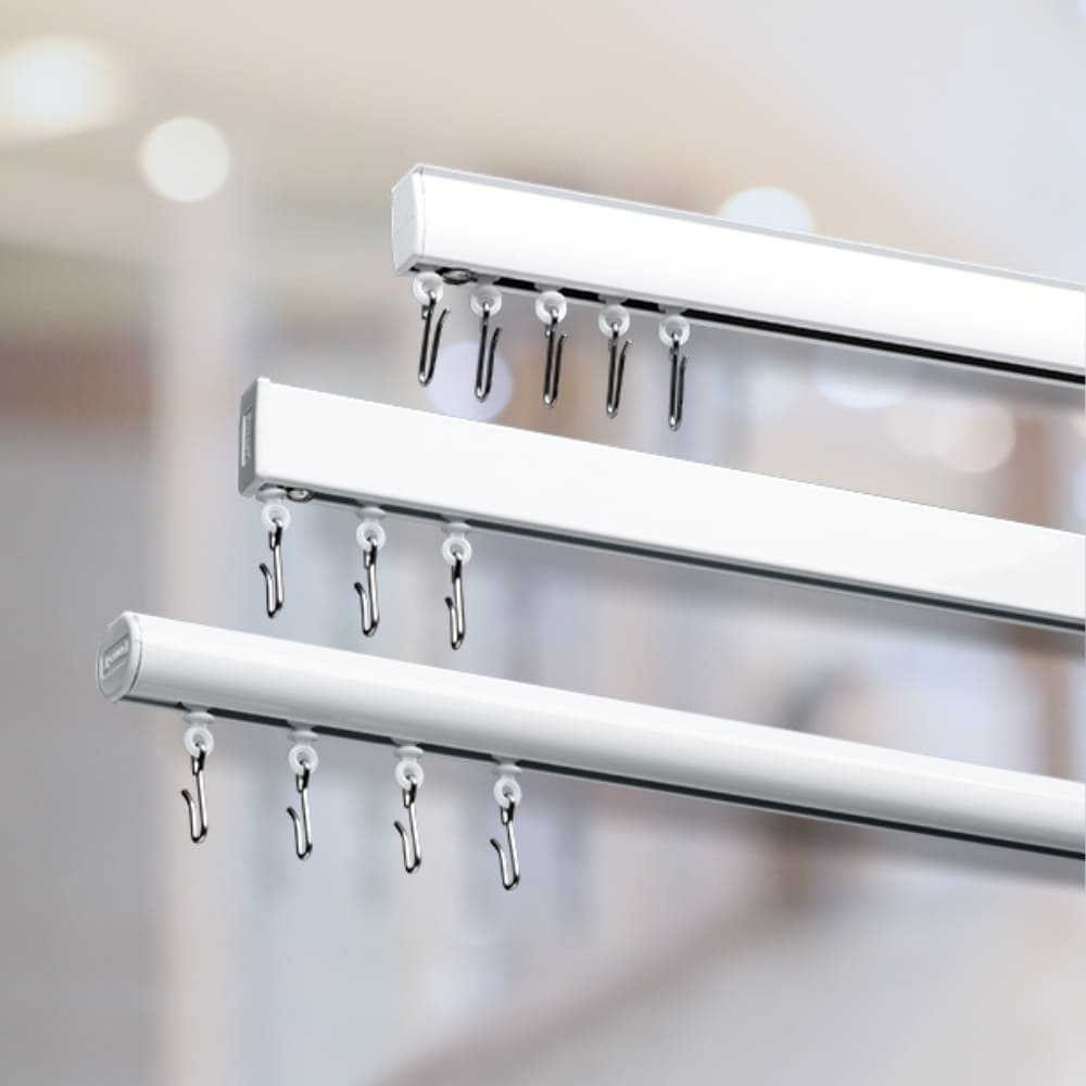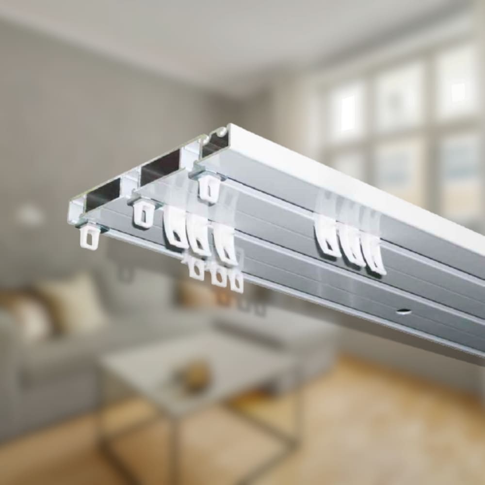 Oferim soluții personalizate pentru orice tip de spațiu, cu șine drepte sau curbate, cu 2 sau 3 canale, asimetrice sau flexibile. Sistemele pot fi acționate manual, motorizat sau pot fi încastrate, adaptându-se perfect cerințelor funcționale și estetice ale fiecărui proiect.