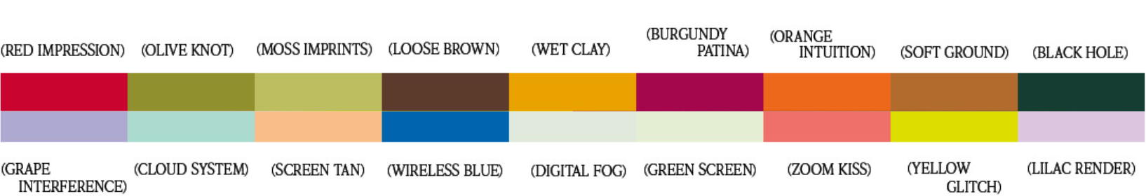 Paleta de culori duce mai departe melanjul dintre umanitate și tehnologie: tonuri pământii de măslină și argilă împreună cu nuanțe incomode de verde acid și albastrul ecranelor de telefon: