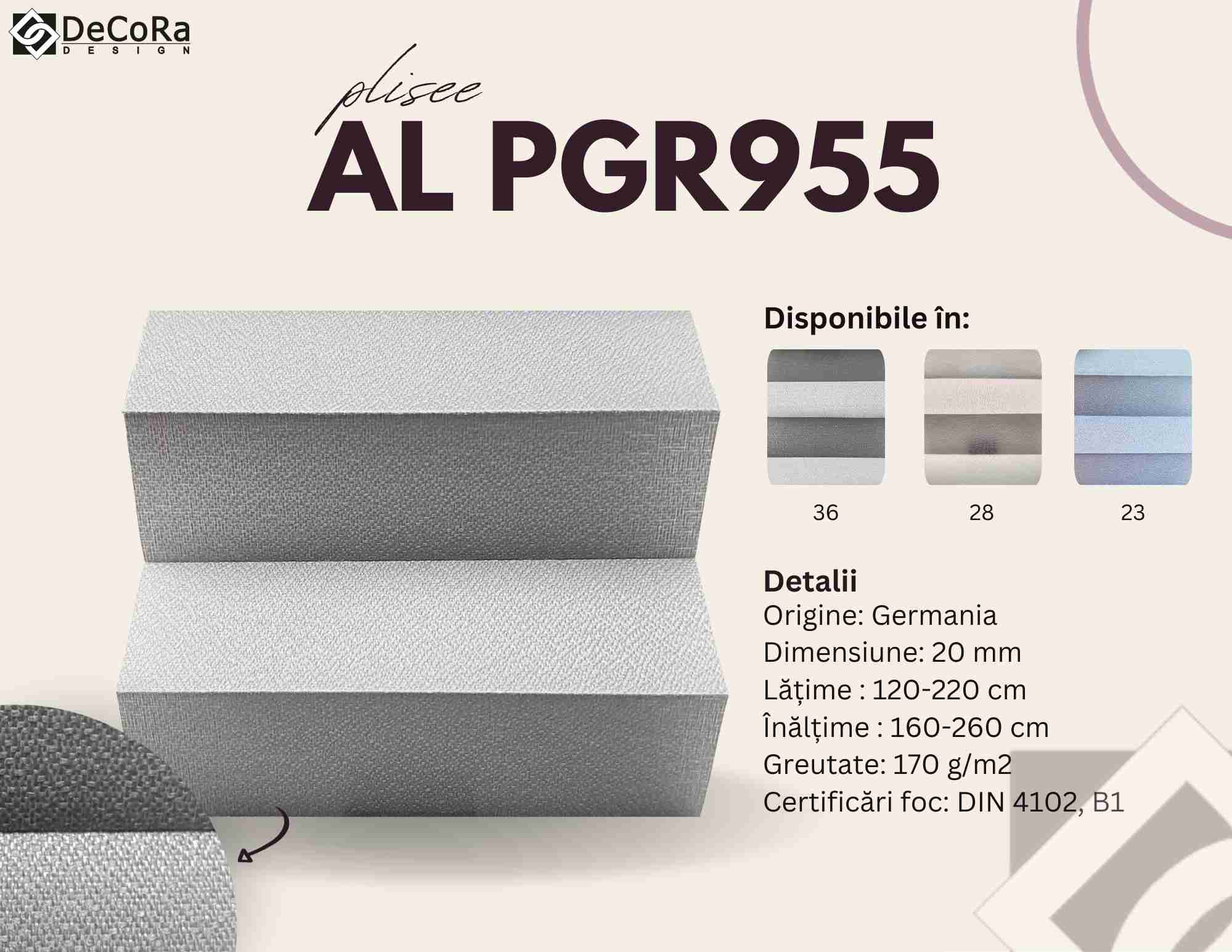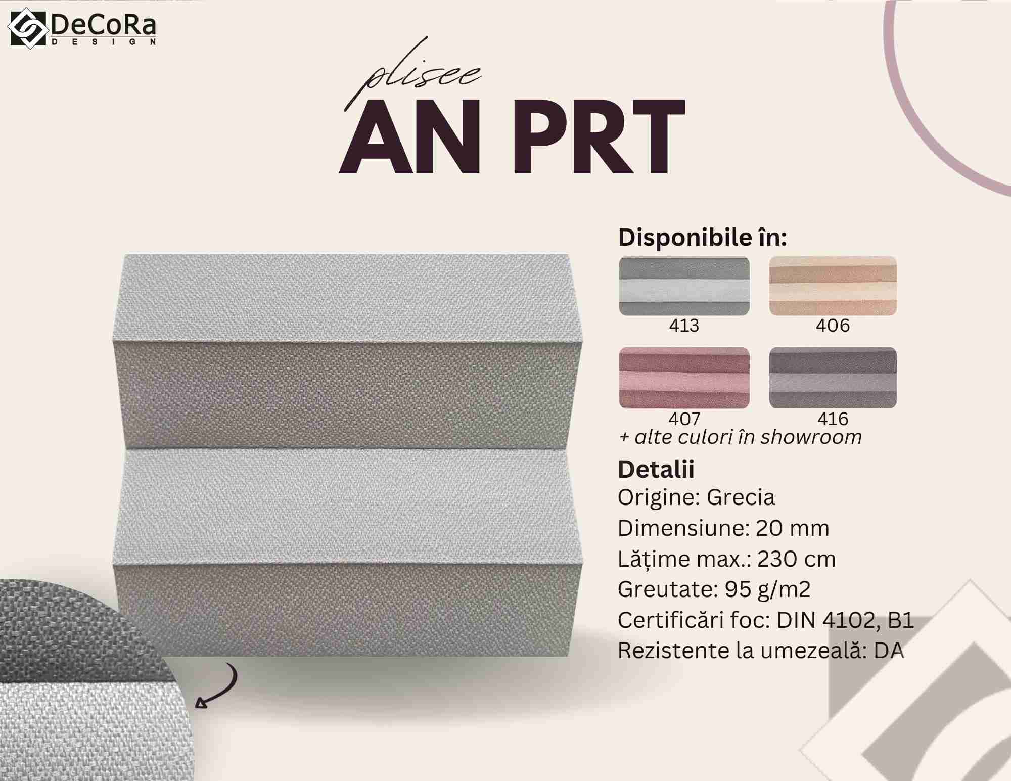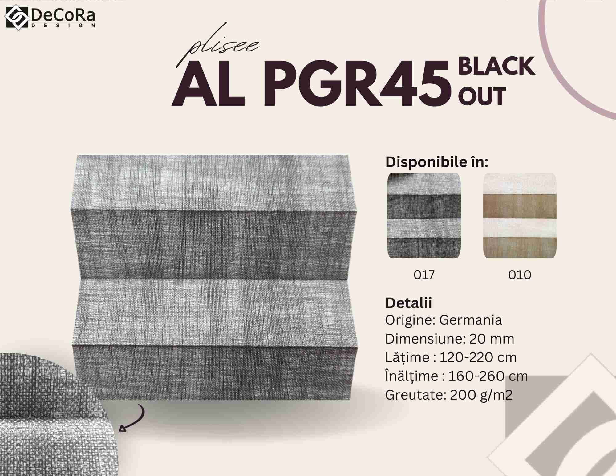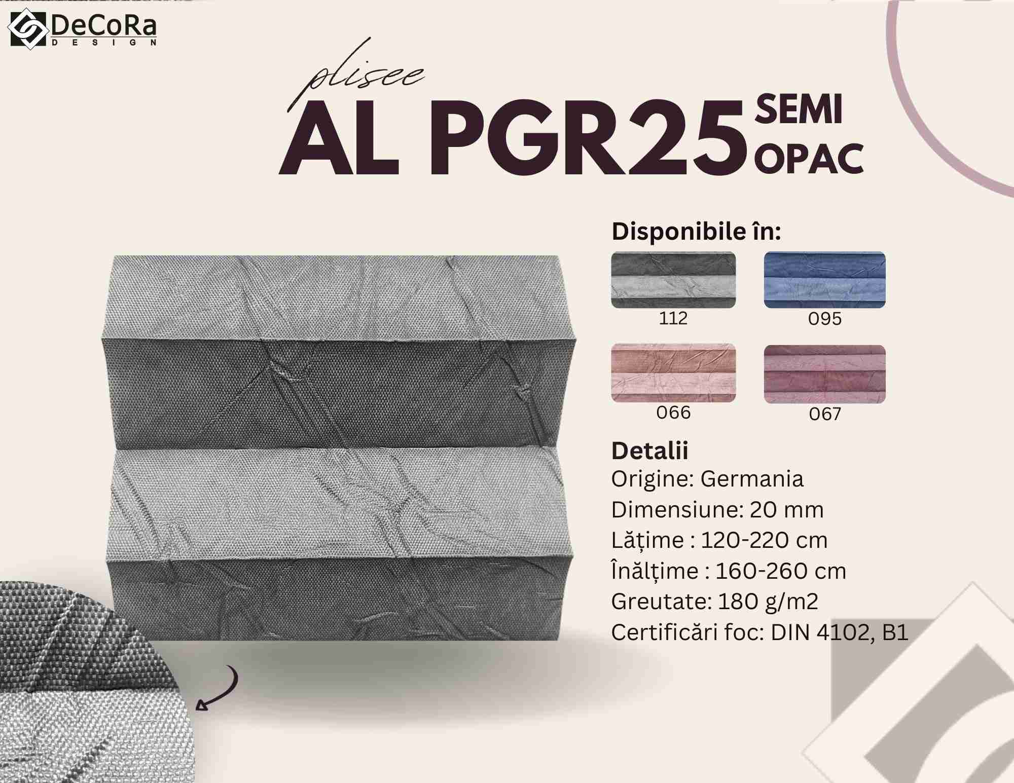 * aceste fișe de produs reprezintă doar o parte din gama noastră de jaluzele plisate. Vă așteptăm în showroom-ul Decora Design cu multe alte modele.
