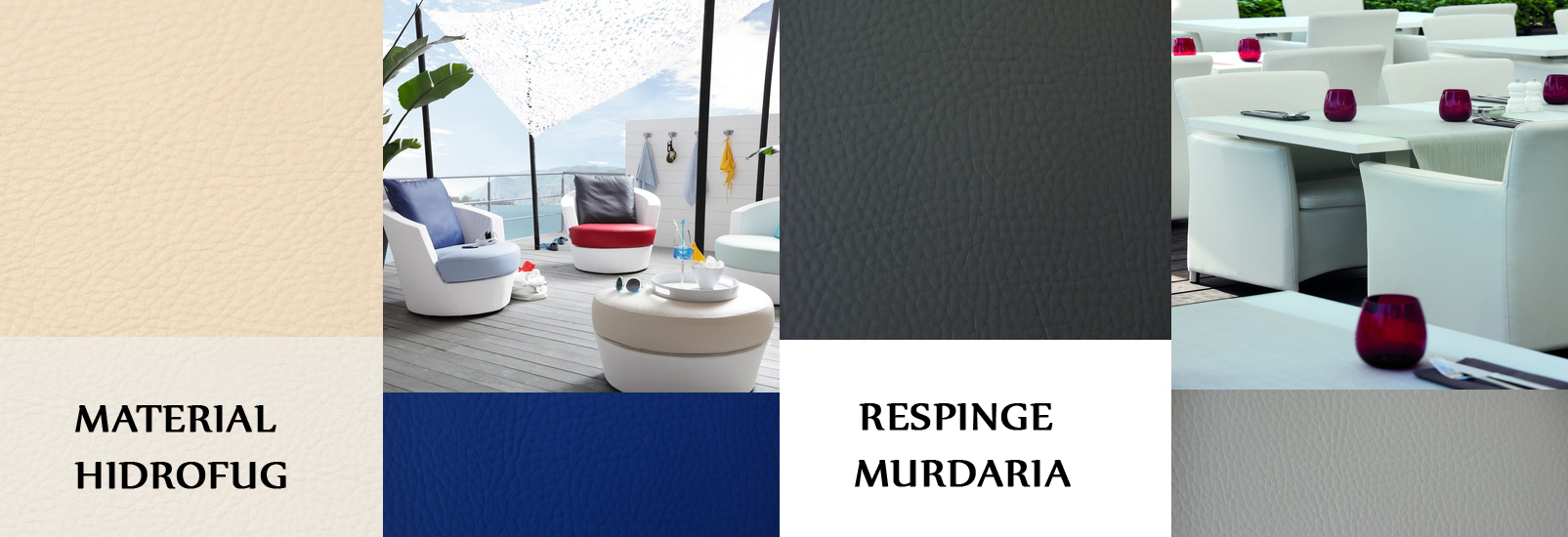 Materialele pe care le recomandam sunt potrivite pentru tapiserii exterioare (sezlong, pat de plaja, saltea, scaun si canapea), pentru fete de masa de exterior, umbrele destinate teraselor de restaurant, de cafenea, de bar, lounge sau club, etc.