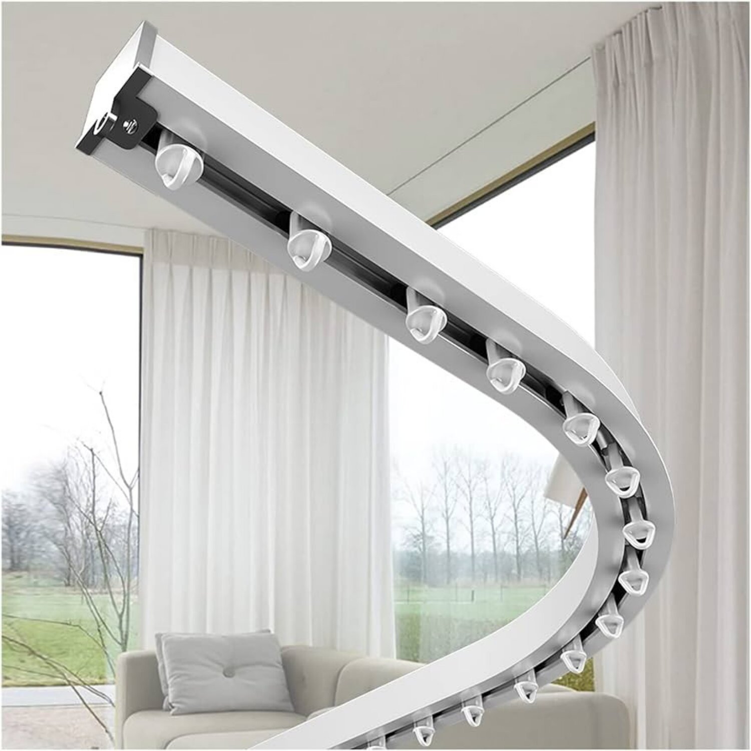 Pe șine pot fi montate o varietate de soluții destinate ferestrelor, precum: perdele, draperii, panouri japoneze și jaluzele verticale, oferind o soluție practică și estetică pentru decorarea ferestrelor. Aceste sisteme oferă un design modern și flexibil, adaptându-se atât nevoilor funcționale, cât și preferințelor estetice ale fiecărui spațiu.